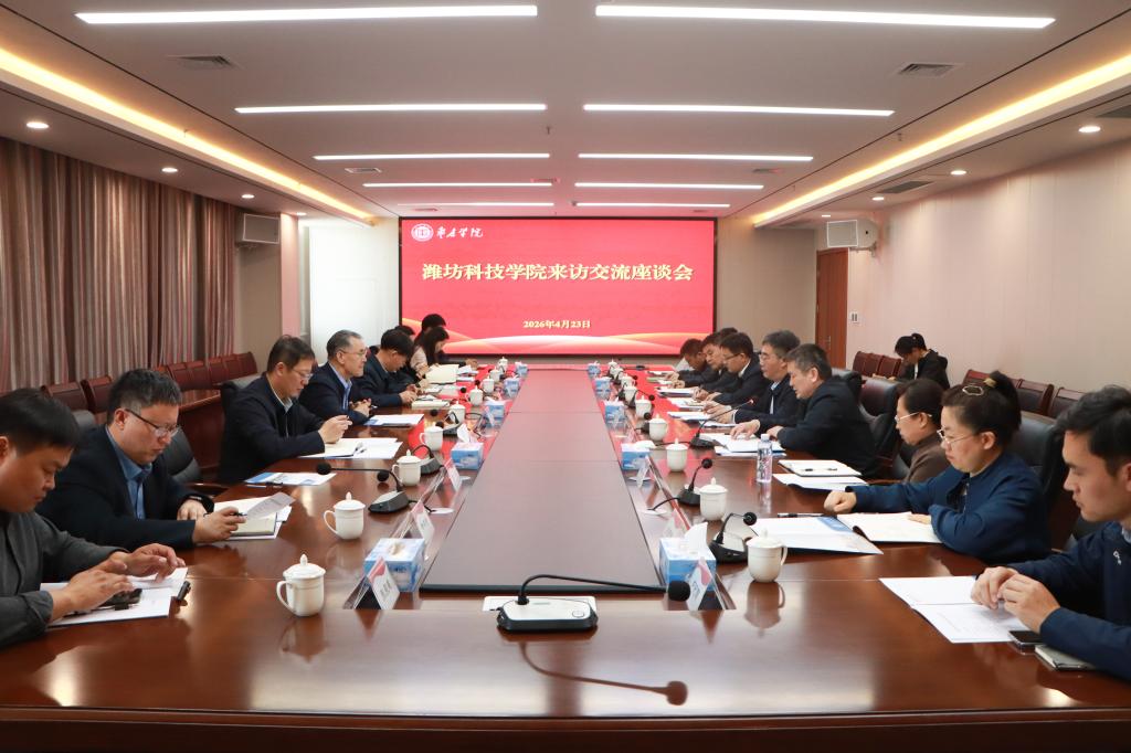 4月23日下午,潍坊科技学院特聘校长赵光强一行10人来我校考察交流。校党委书记高峰,党委委员、副校长安涛,党委委员、宣传部部长闫昕在明理楼接待室接待了赵光强一行并座谈交流。